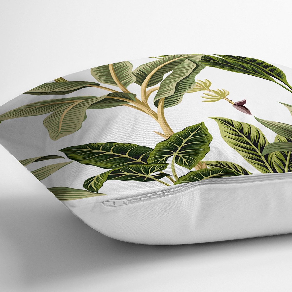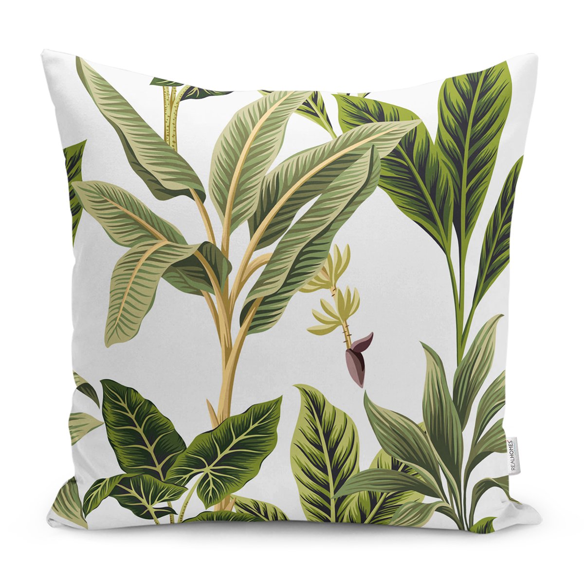 Yeşil Tropik Yaprak Motifli Modern Yastık Kırlent Kılıfı