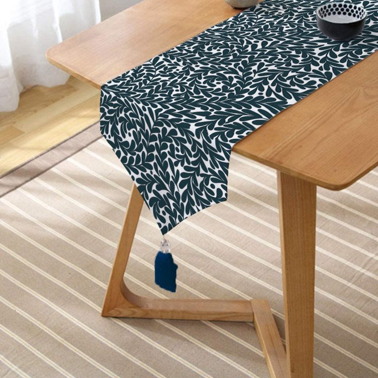 Yeşil Yaprak Motifli Dijital Baskılı Modern Püsküllü Şönil Üçgen Runner