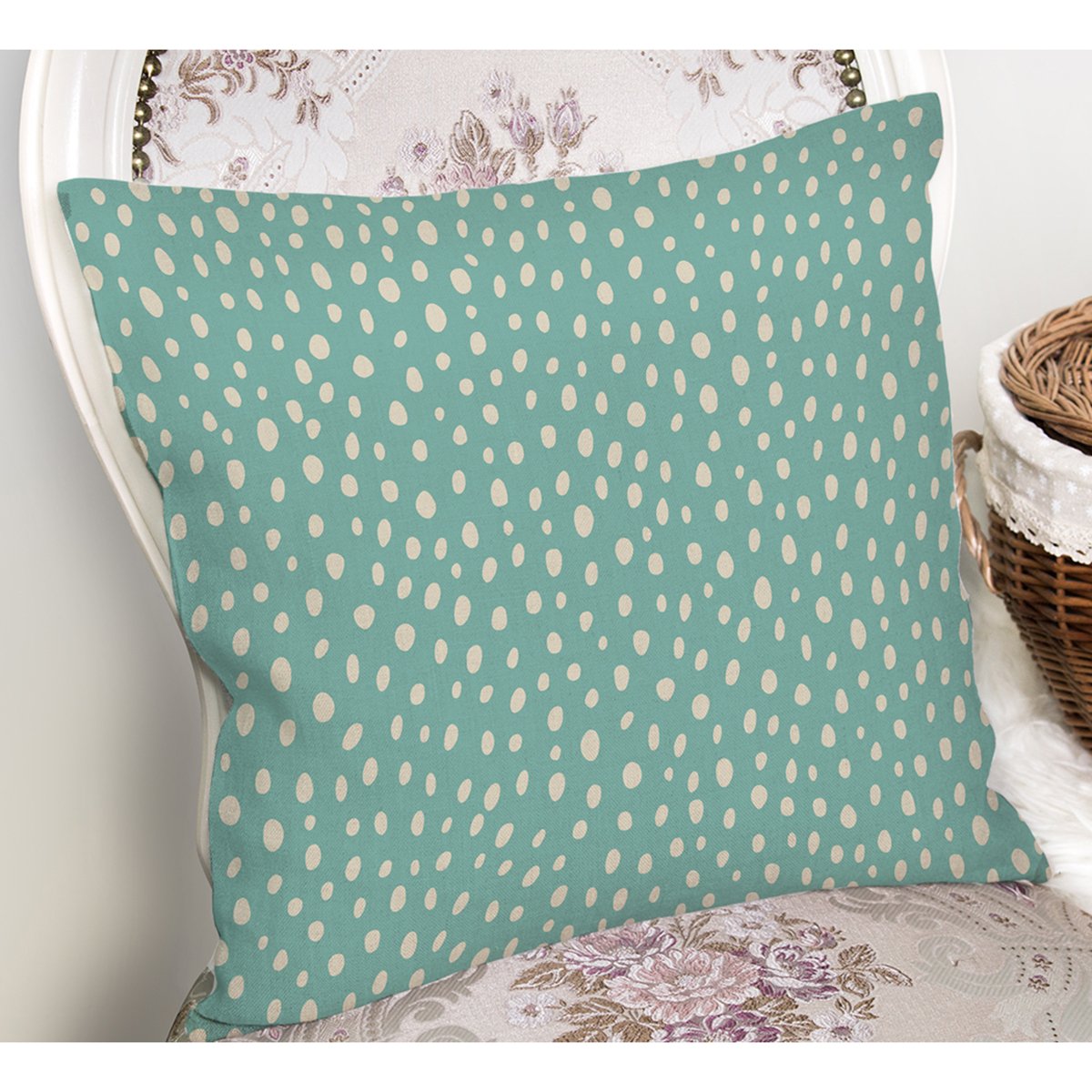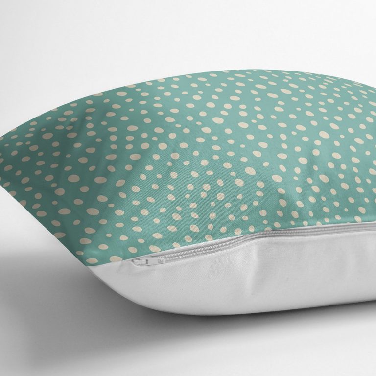 Yeşil Zemin Krem Puantiyeli Modern Yastık Kırlent Kılıfı