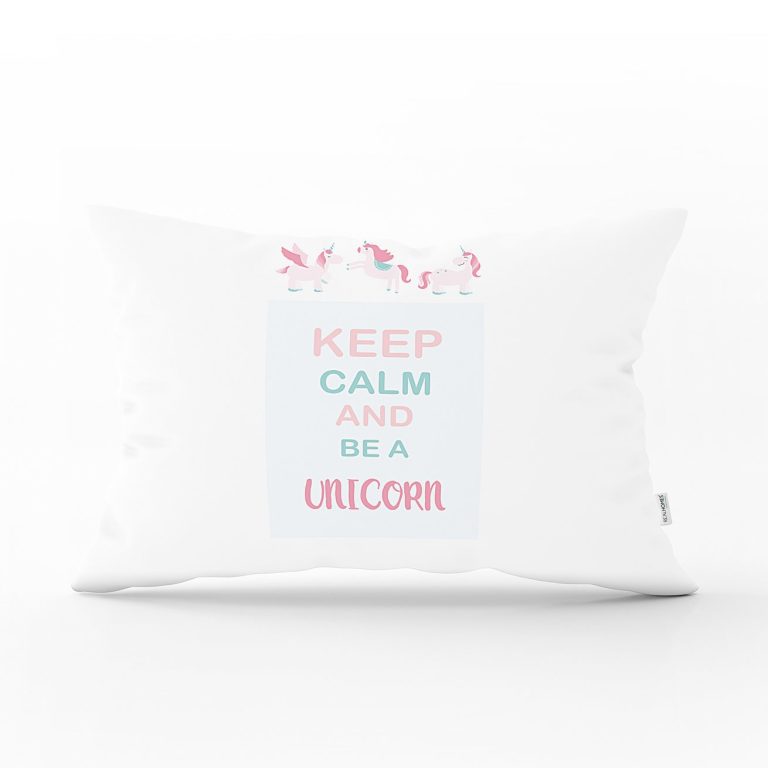 Yeşil Zeminde Unicorn At Tasarımlı Bebek Odası Dikdörtgen Yastık Kılıfı