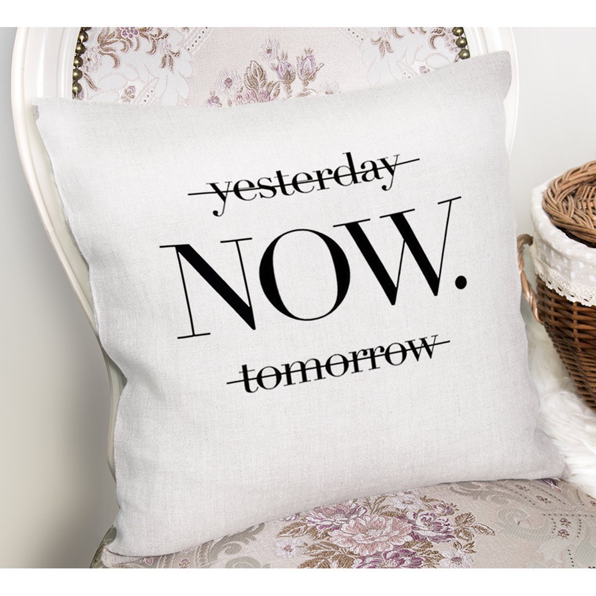 Yesterday Tomorrow NOW Yazılı Dijital >Baskılı Yastık Kırlent Kılıfı