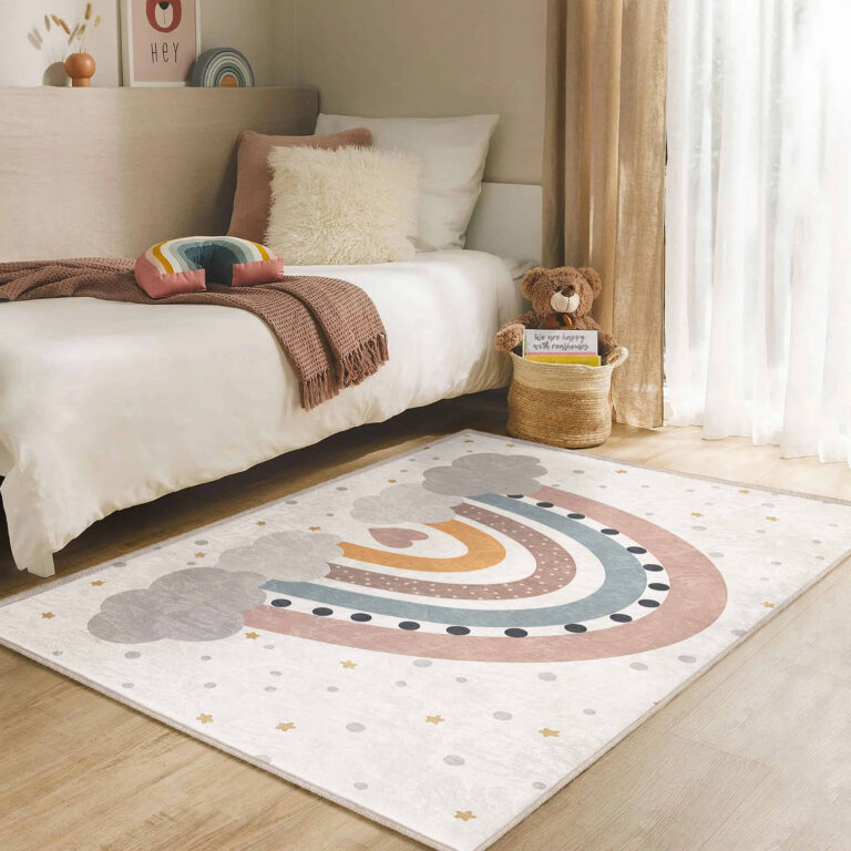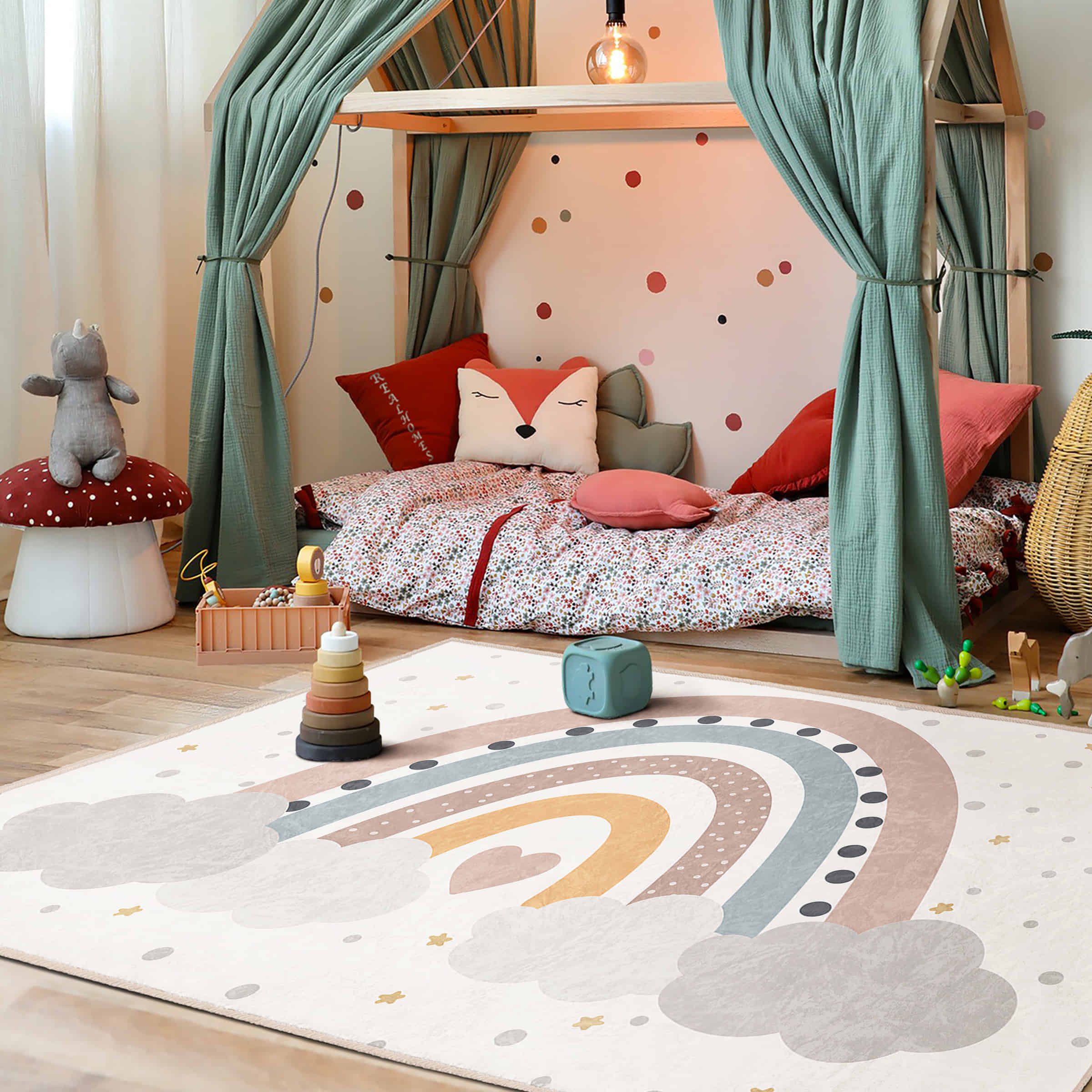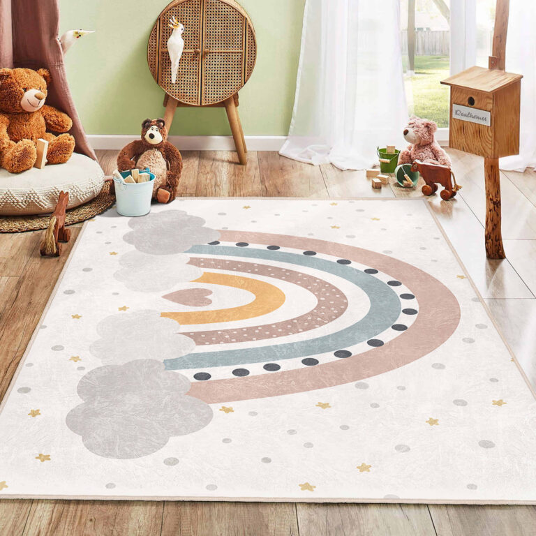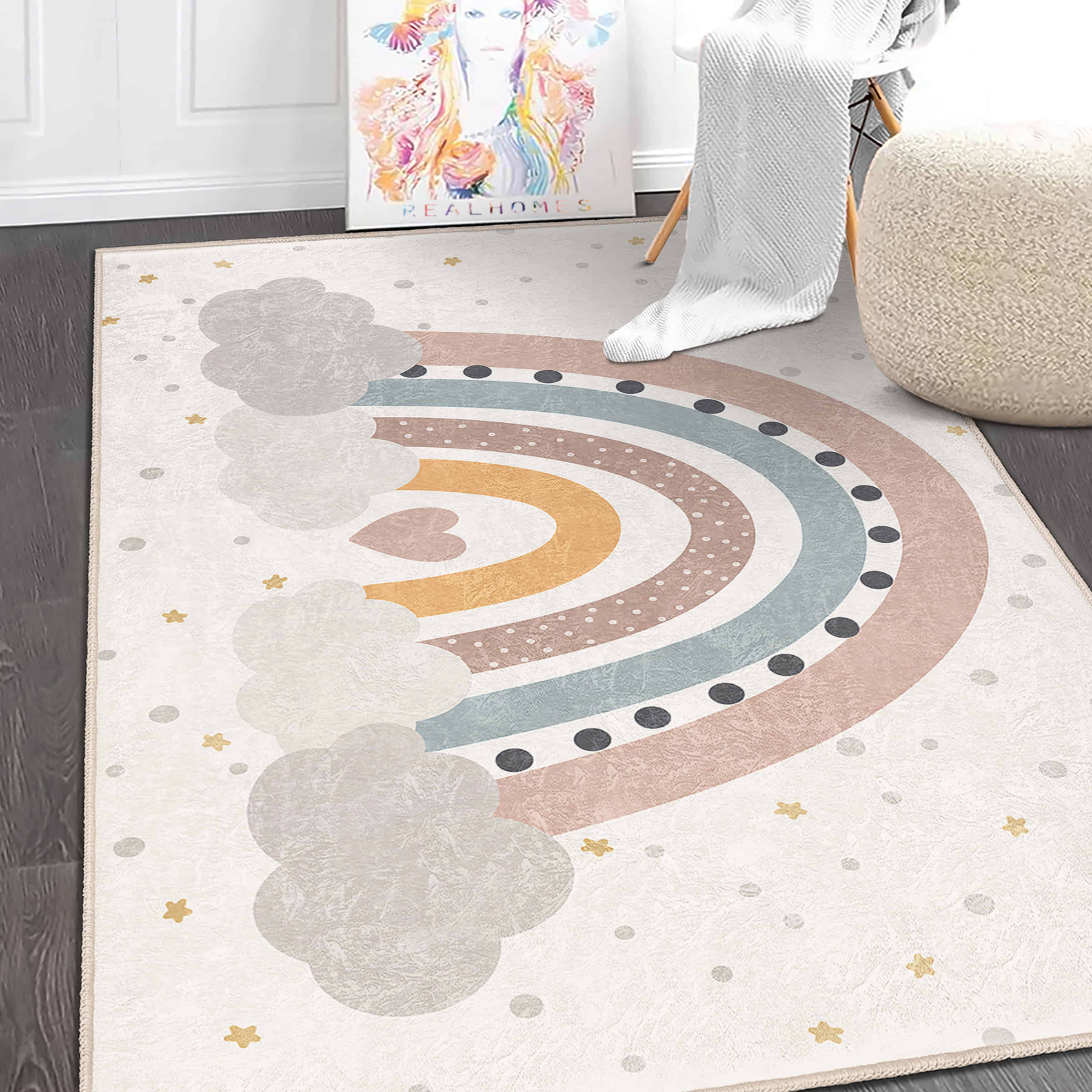 Yıldızlarla Dolu Pastel Renkli Gabardin Desenli Kaymaz Taban Diğer Çocuk Halısı