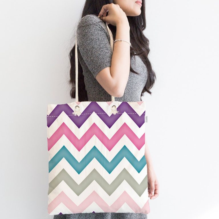 Zigzag Desen Dijital Baskılı Fermuarlı Omuz Çantası
