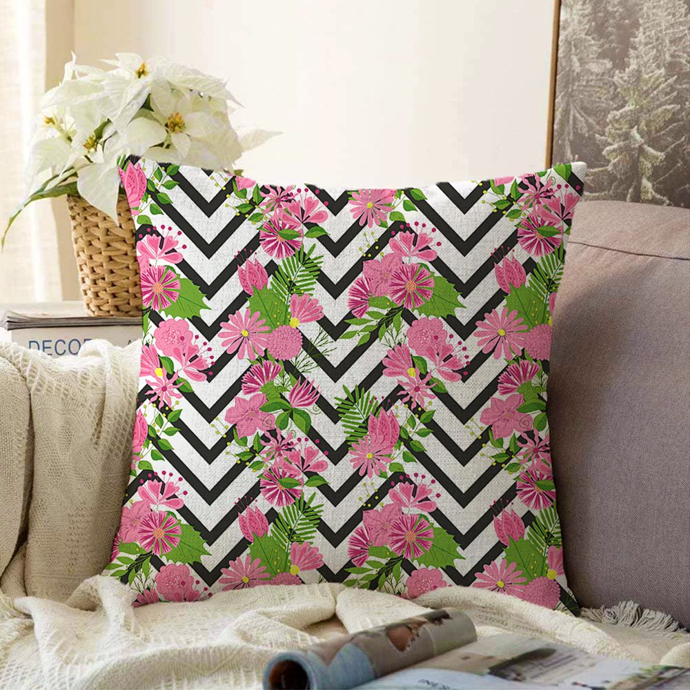Zigzag Zebra Desenli Ogea Desenli Dekoratif Raşel Yastık Kılıfı
