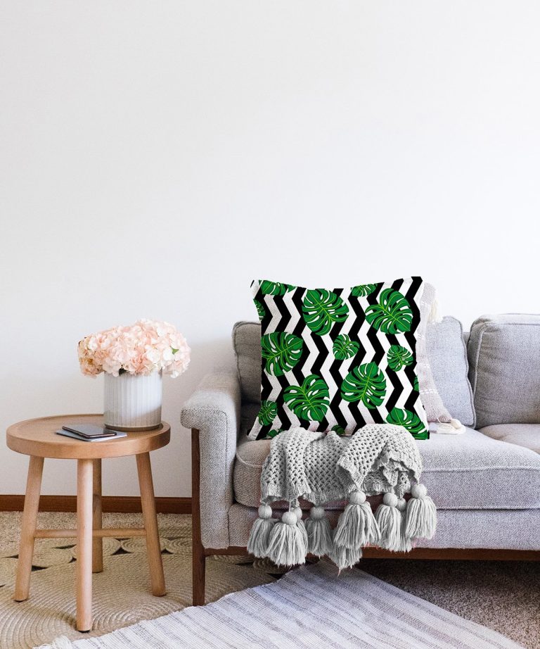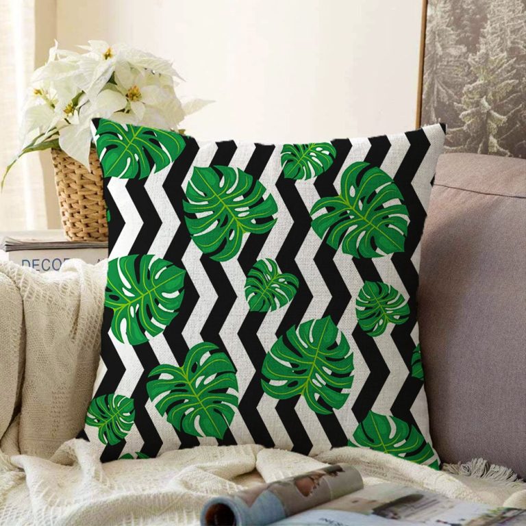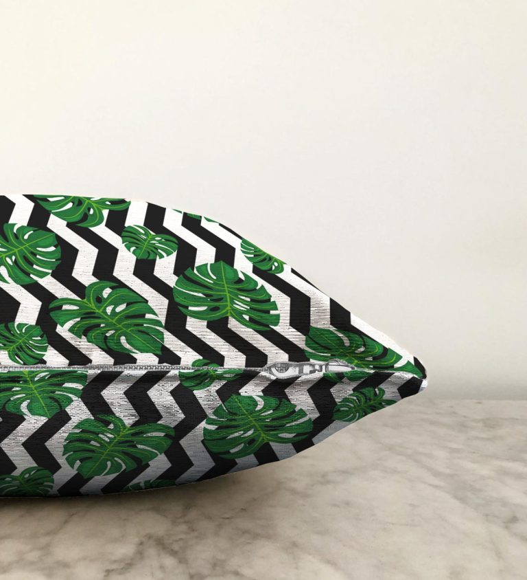 Zigzag Zebra Temalı Yaprak Çizimli Dijital Baskılı Raşel Yastık Kırlent Kılıfı